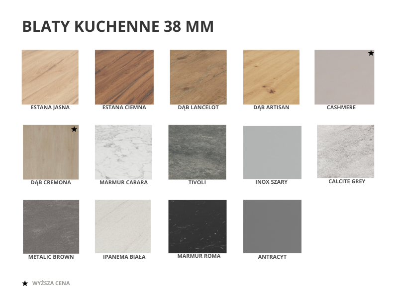 W ofercie posiadamy blaty kuchenne o grubości 28 mm i 38 mm w różnych wersjach kolorystycznych, co pozwala perfekcyjnie dopasować blat do wnętrza.