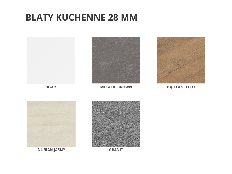 W ofercie posiadamy blaty kuchenne o grubości 28 mm i 38 mm w różnych wersjach kolorystycznych, co pozwala perfekcyjnie dopasować blat do wnętrza.