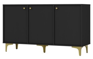 Komoda 3 drzwiowa z półkami - SYDNEY 1, czarny grafit - złoty