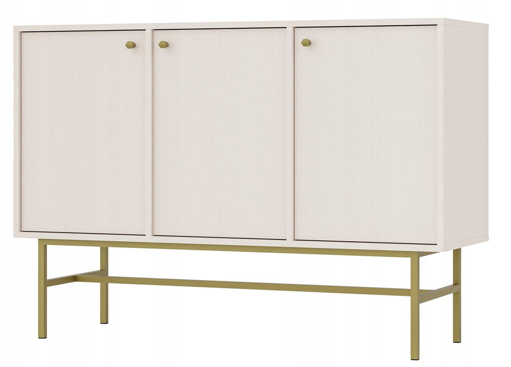 Komoda 3 drzwiowa z półkami - SYDNEY 3, beż piaskowy - złoty