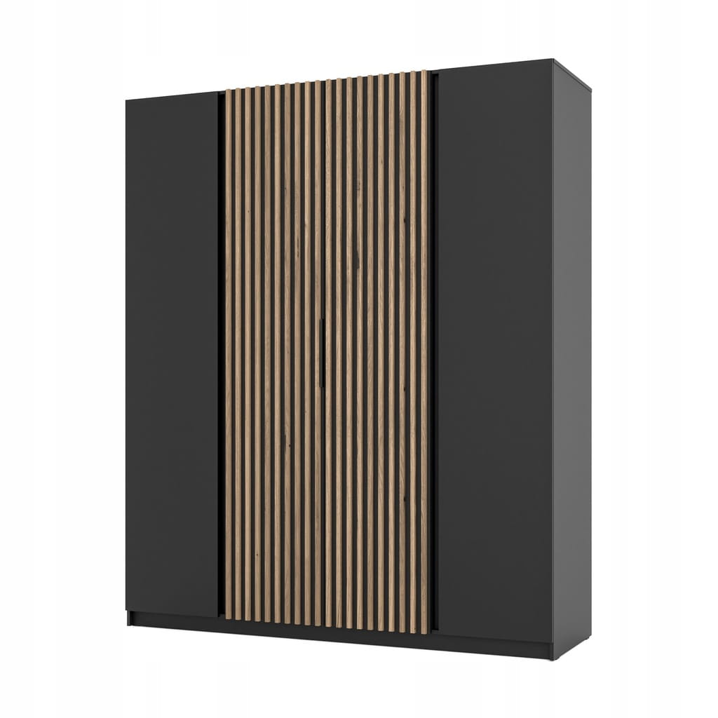 Duża Szafa CZTERODRZWIOWA Iga 200 cm do sypialni, czarny - dąb evoke lamele