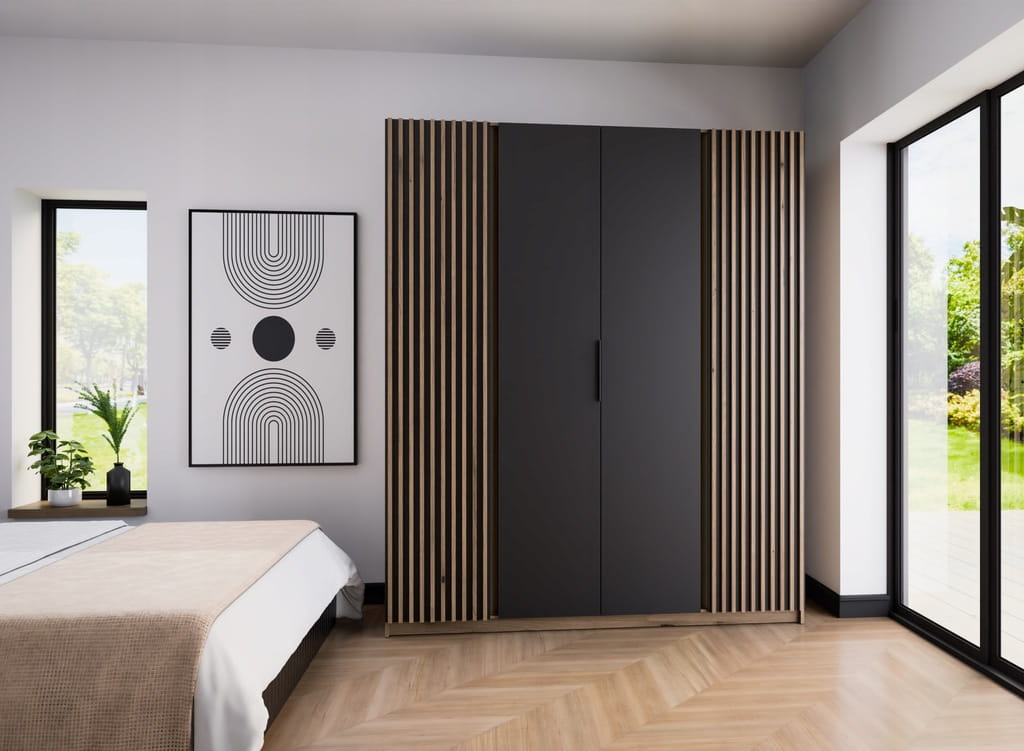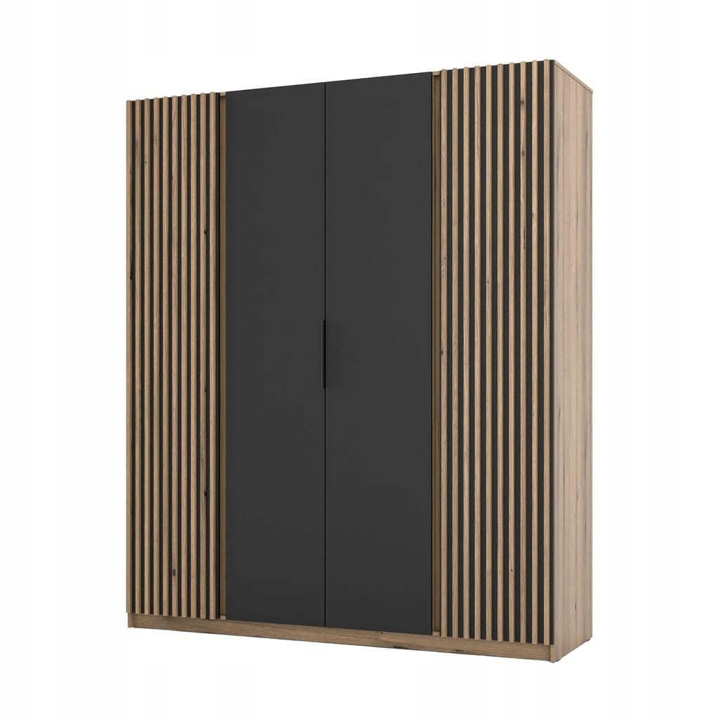 Duża Szafa CZTERODRZWIOWA Iga 200 cm do sypialni, dąb evoke lamele - czarny
