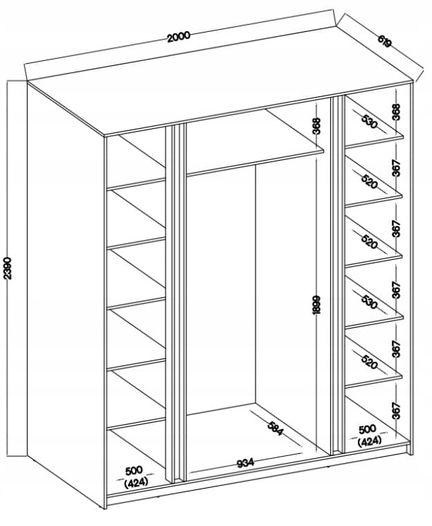 - Szafa zawieraja 13 półek oraz drążek na wieszaki