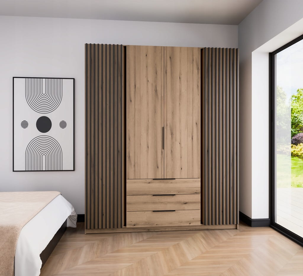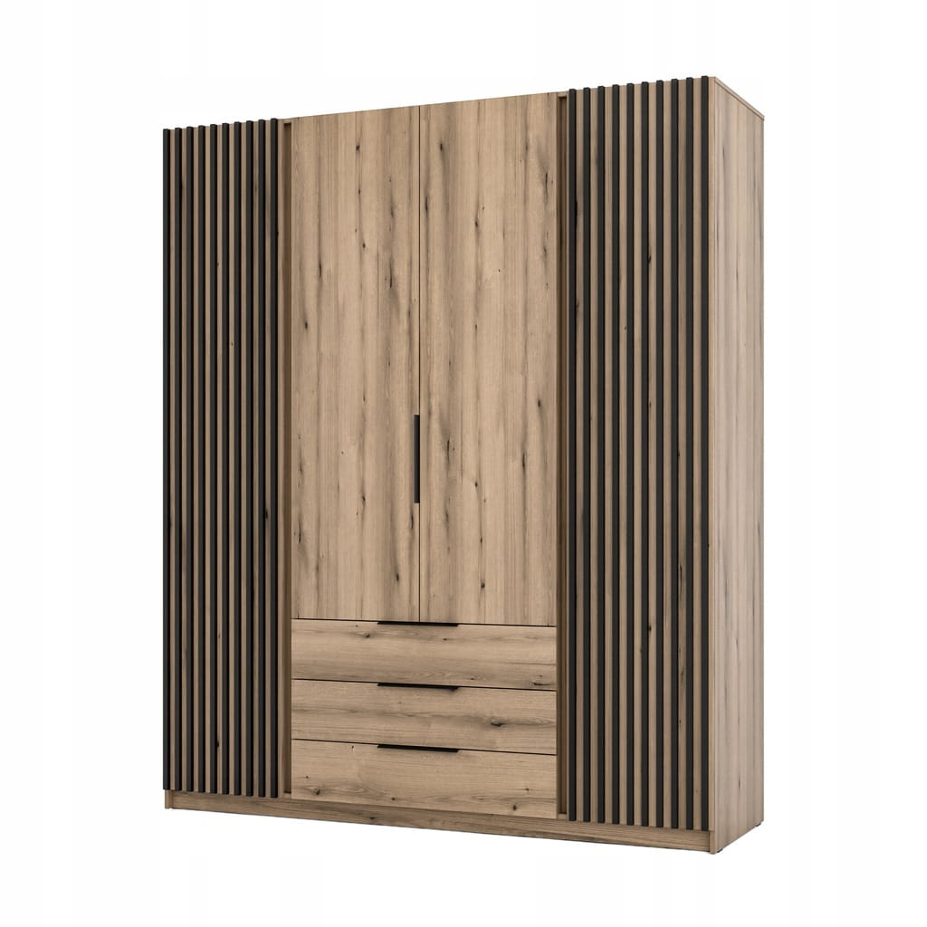 Duża Szafa CZTERODRZWIOWA Iga 200 cm do sypialni dąb evoke lamele, szuflady