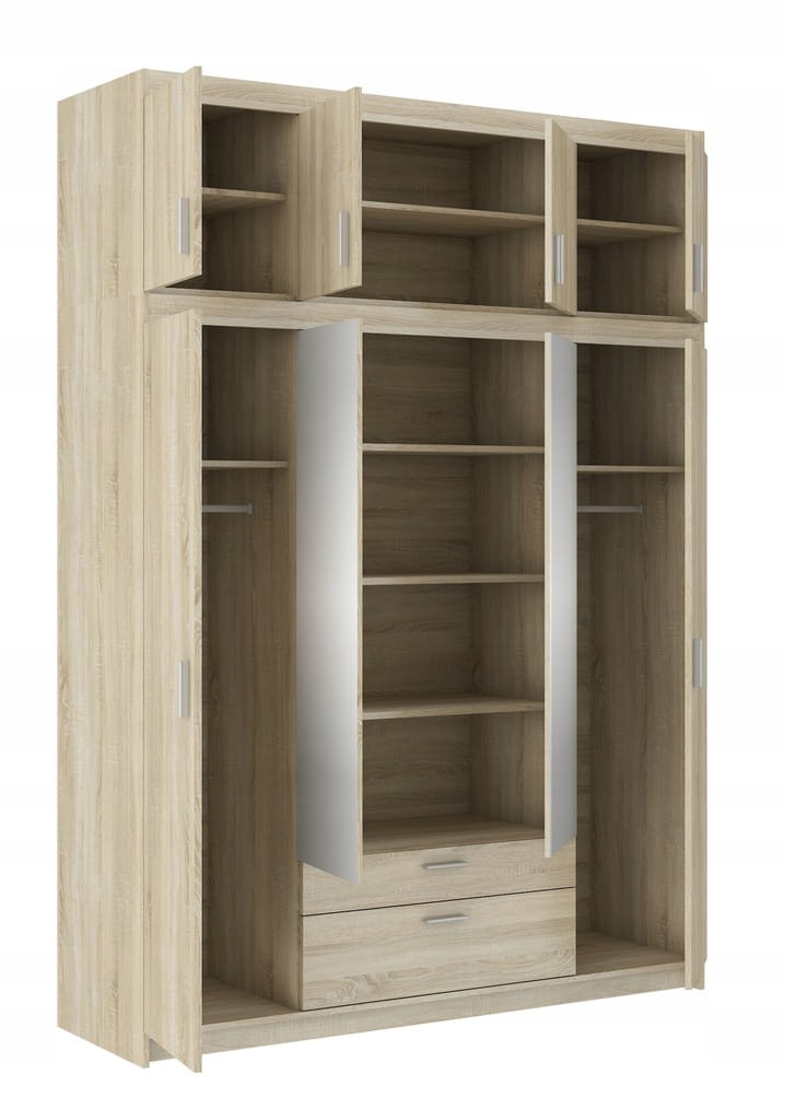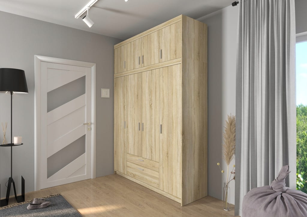 Duża Szafa CZTERODRZWIOWA KLEO z nadstawką, Garderoba DĄB SONOMA