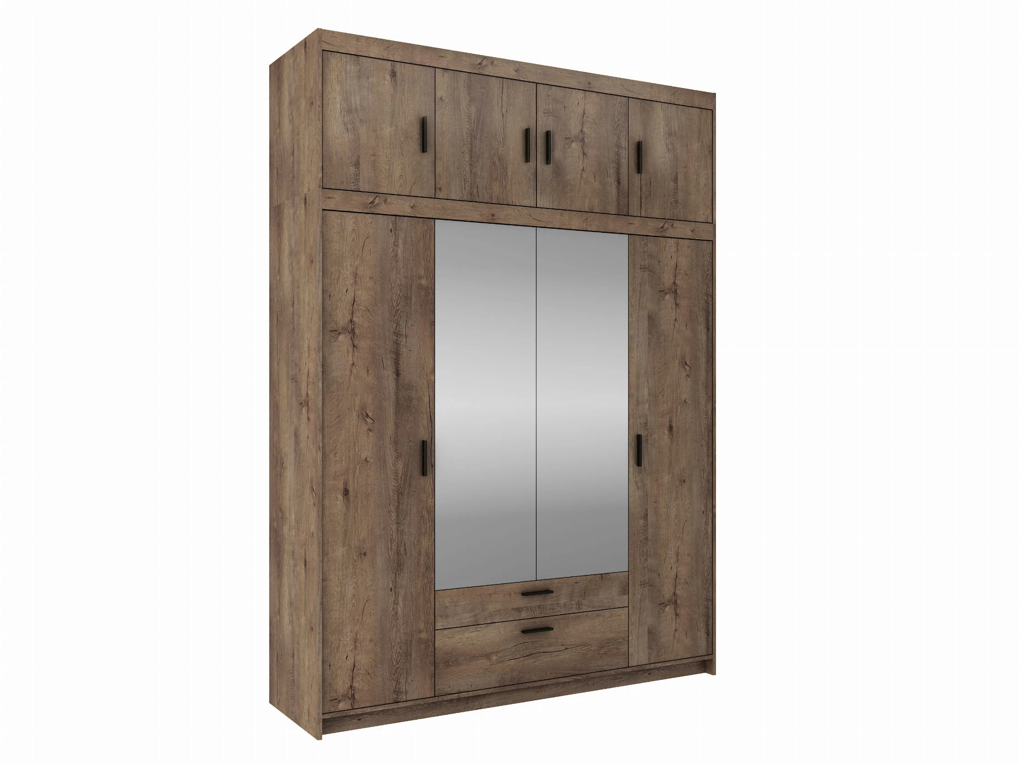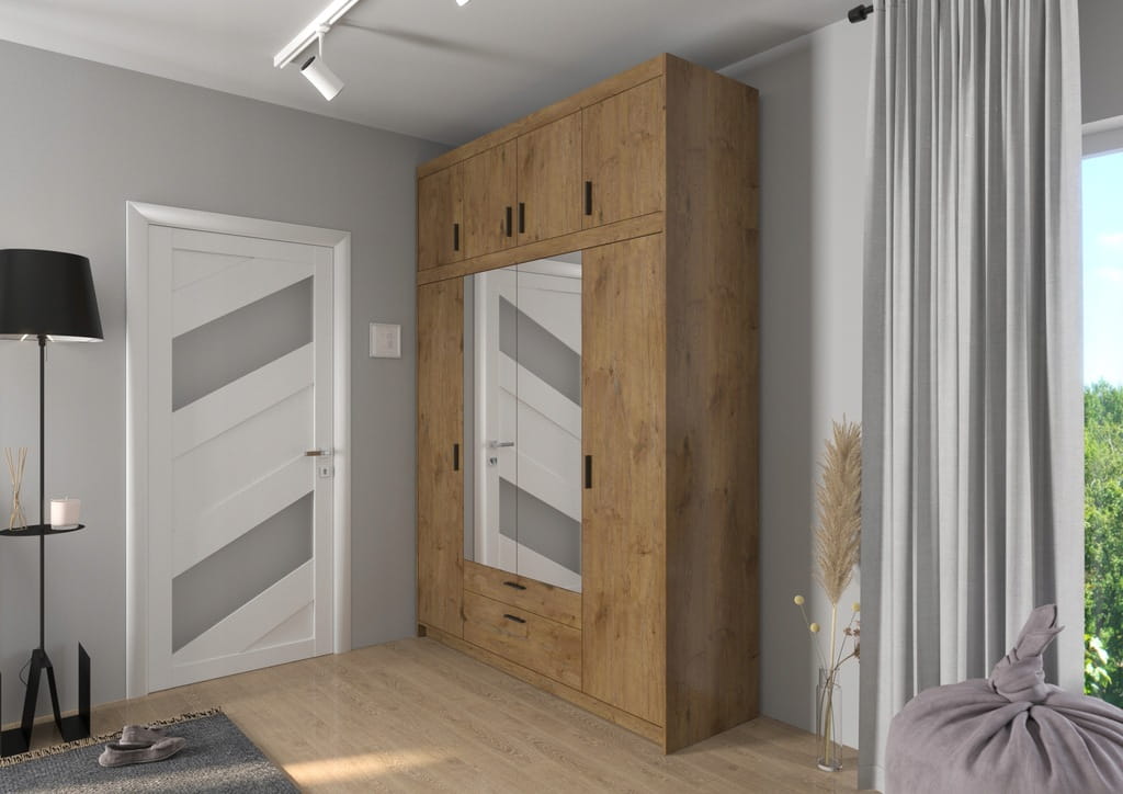 Szafa czterodrzwiowa KLEO 176 cm z lustrem i szufladami – Dąb Lefkas, pojemna garderoba