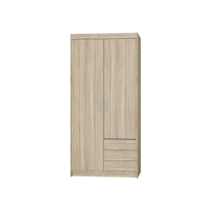 Dwudrzwiowa szafa KLEO z trzema szufladami Garderoba DĄB SONOMA