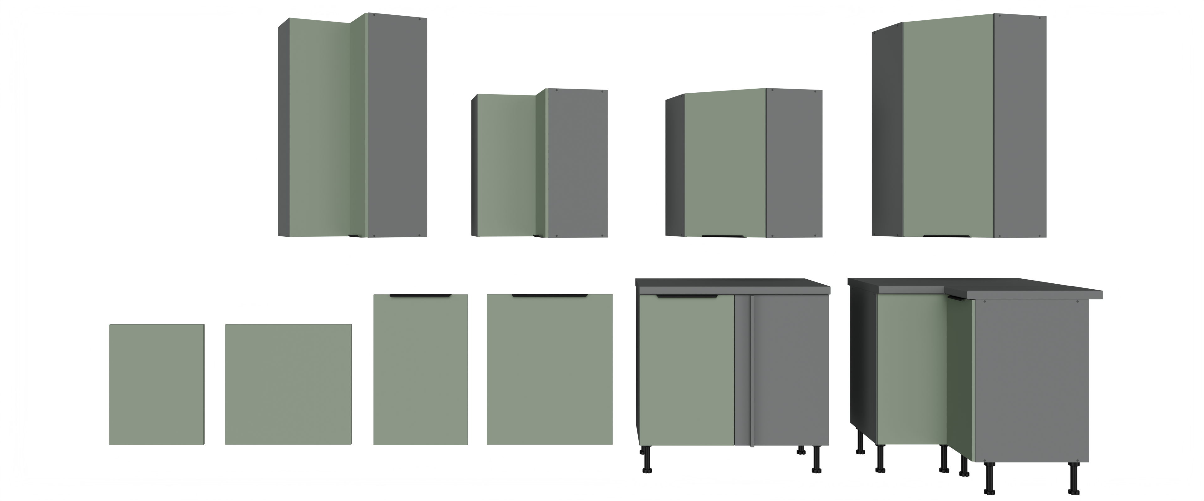 UWAGA! Szafki dolne z kolekcji kuchennej CALIA wykonane na korpusie w kolorze Antracyt - NIE posiadają w zestawie cokołów dociętych pod wymiar szafki! Szafki stoją na czarnych regulowanych nóżkach.