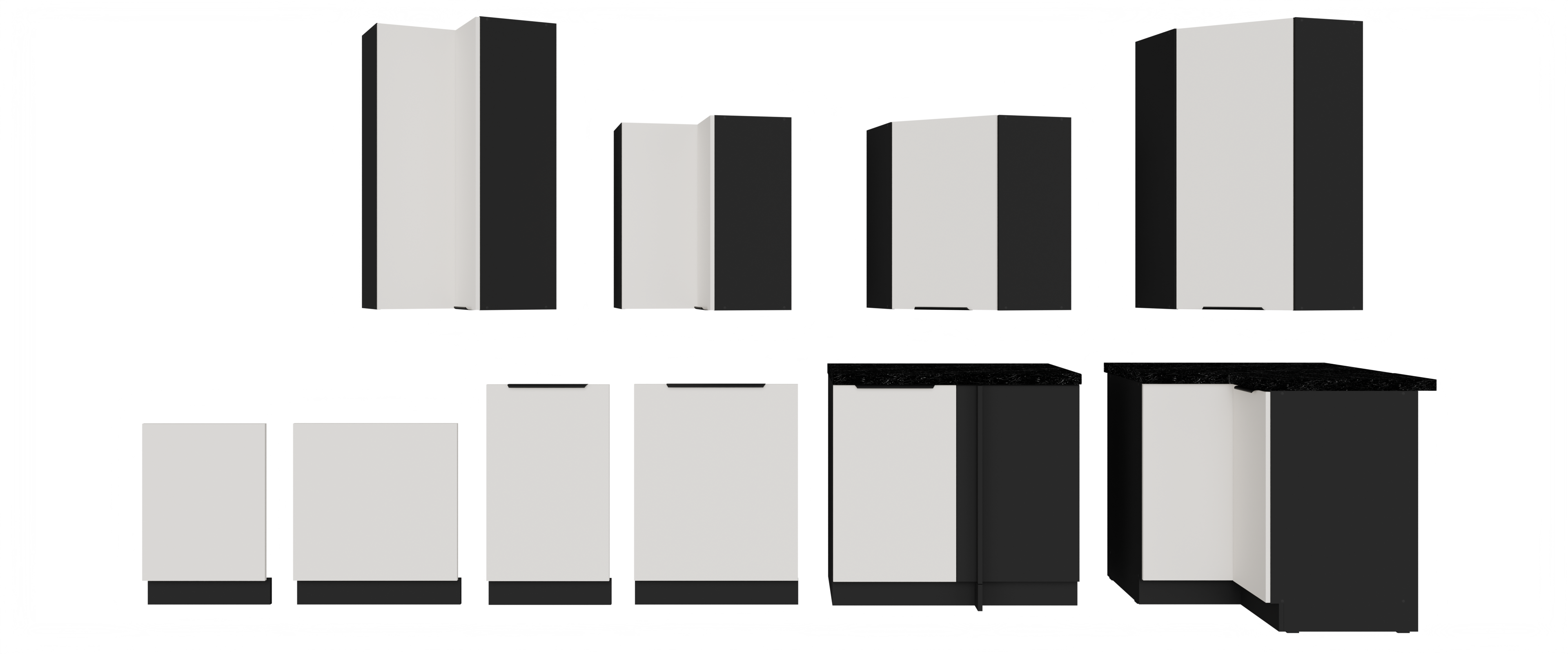 Fronty dostępne są w pięciu kolorach: crystal white, aquamarine, sandgrau, grafit i czarny, natomiast korpusy w czterech wariantach: biały, dąb artisan, czarny oraz antracyt. Tak szeroka gama pozwala tworzyć harmonijne lub kontrastowe zestawienia dopasowane do każdego wnętrza.