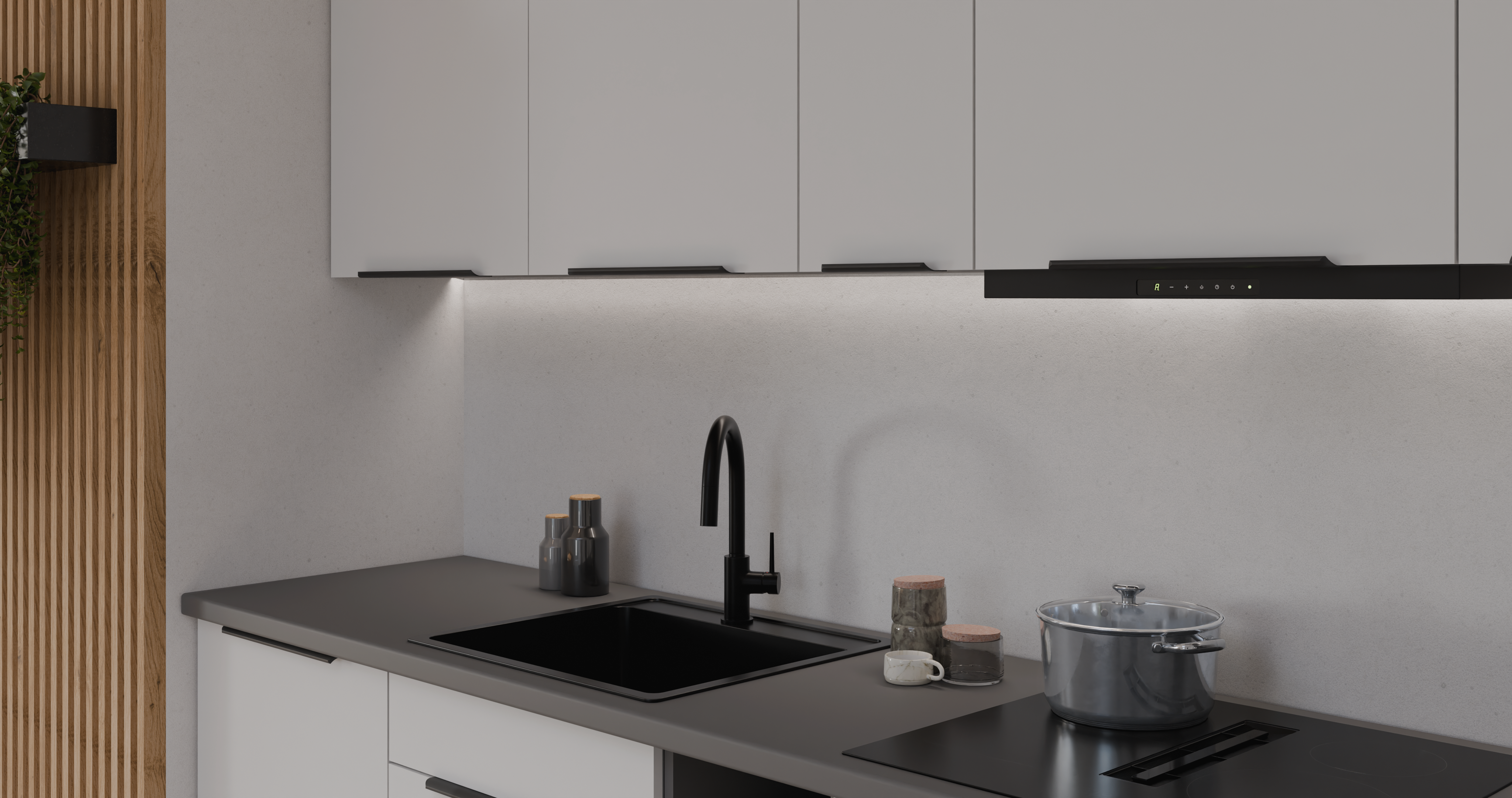 Szafki kuchenne z kolekcji CALIA zostały wyposażone w prowadnice PREMIUM BOX oraz system cichego domyku, które zapewniają komfort użytkowania i trwałość na lata. To kuchnia, która zachwyca wyglądem i pozostaje praktyczna każdego dnia.
