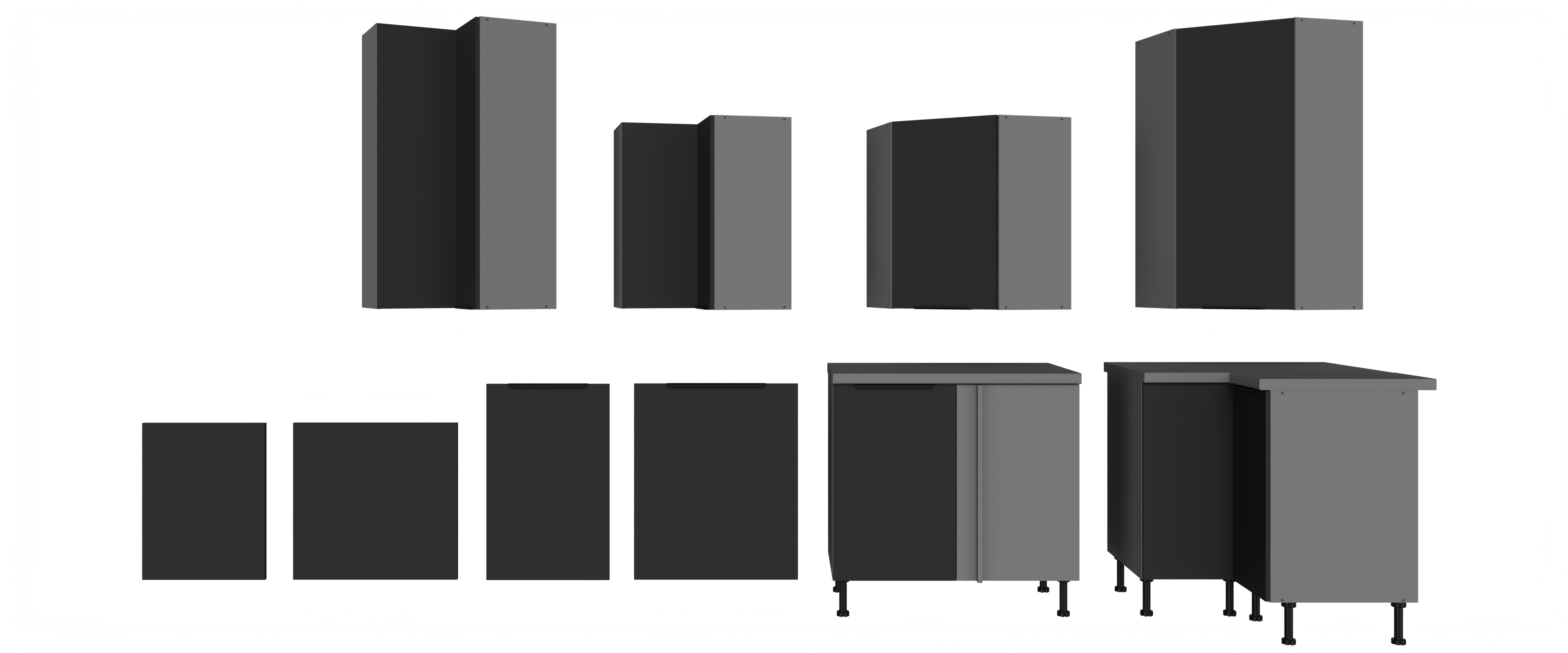 UWAGA! Szafki dolne z kolekcji kuchennej CALIA wykonane na korpusie w kolorze Antracyt - NIE posiadają w zestawie cokołów dociętych pod wymiar szafki! Szafki stoją na czarnych regulowanych nóżkach.