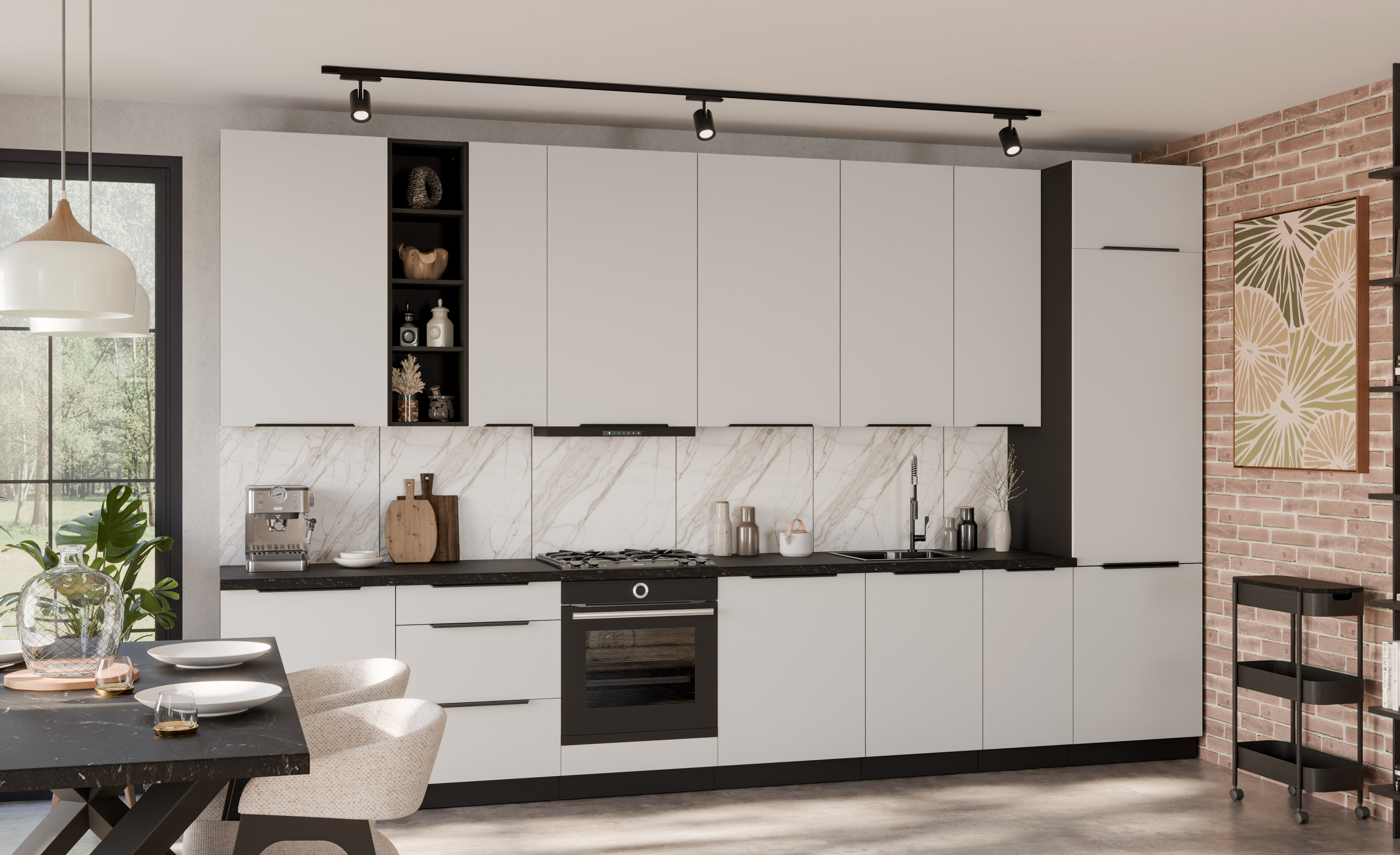 Szafki kuchenne z kolekcji CALIA zostały wyposażone w prowadnice PREMIUM BOX oraz system cichego domyku, które zapewniają komfort użytkowania i trwałość na lata. To kuchnia, która zachwyca wyglądem i pozostaje praktyczna każdego dnia.