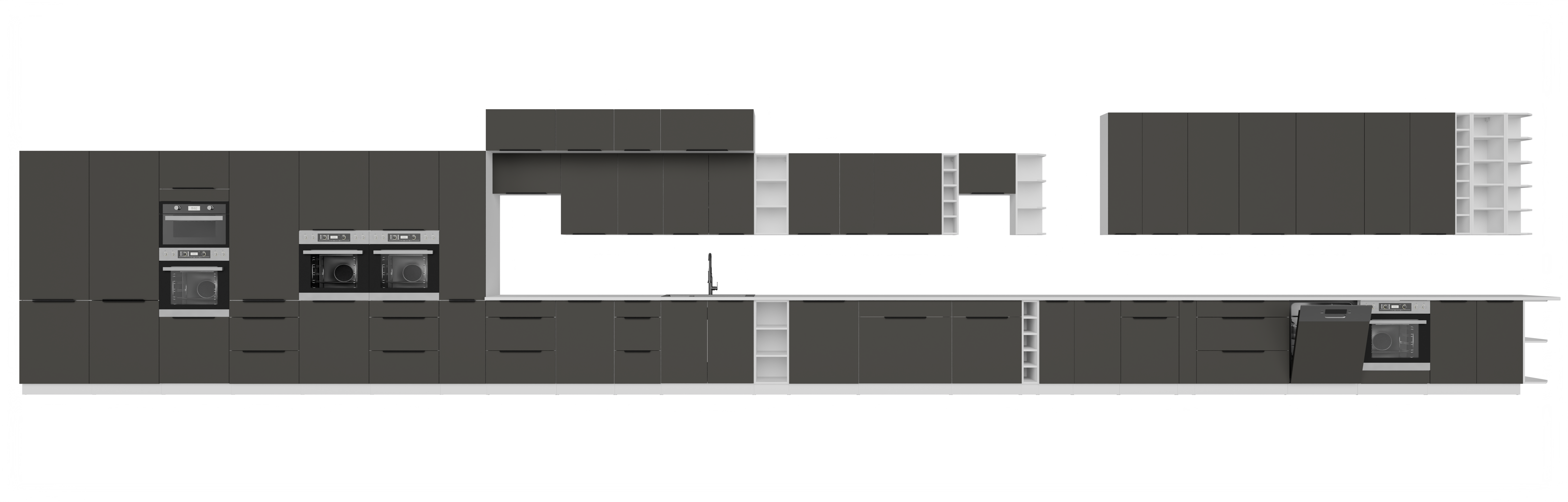 Fronty dostępne są w pięciu kolorach: crystal white, aquamarine, sandgrau, grafit i czarny, natomiast korpusy w czterech wariantach: biały, dąb artisan, czarny oraz antracyt. Tak szeroka gama pozwala tworzyć harmonijne lub kontrastowe zestawienia dopasowane do każdego wnętrza.