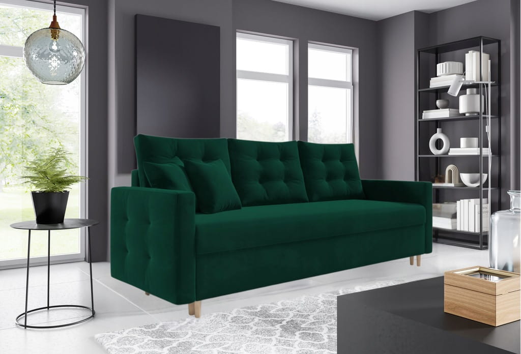 Kanapa rozkładana, sofa CANDE z funkcją spania, wybór tkanin/ ciemna zieleń