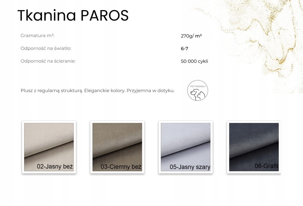 Wytrzymała tkanina tapicerska o stonowanej kolorystyce. Miękki i przyjemny materiał pluszowy. Odporna na tarcie i płowienie. Tkanina ,, Pet Friendly" - przyjazna zwierzętom :)