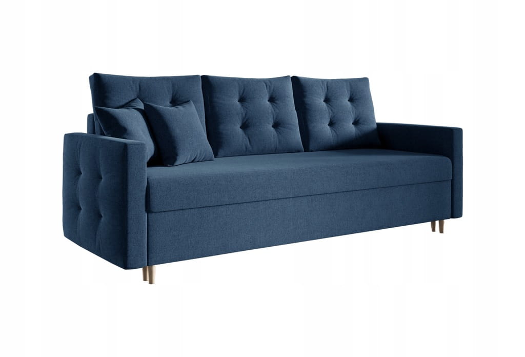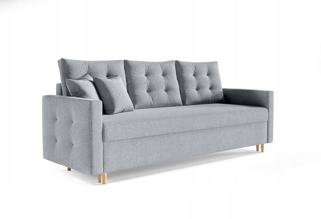 - Pojemnik na pościel: Umożliwia on łatwe przechowywanie pościeli, co oszczędza miejsce, utrzymuje porządek i podnosi komfort codziennego użytkowania kanapy.
