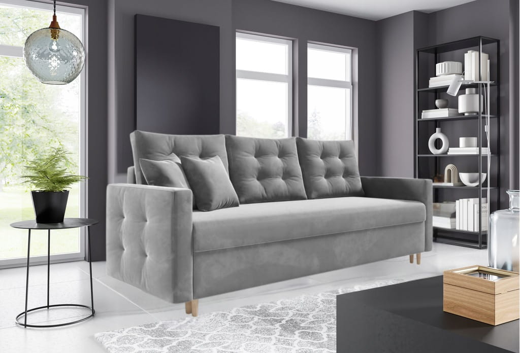 Kanapa rozkładana, sofa CANDE z funkcją spania, wybór tkaniny/ szary plusz
