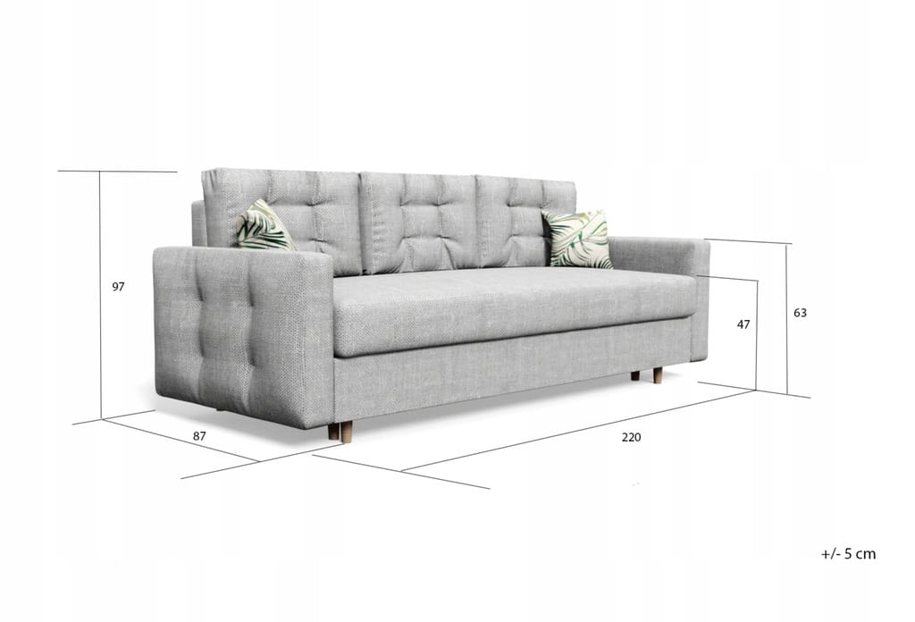 Tolerancja wymiarów mebli tapicerowanych wynosi +/- 5cm.