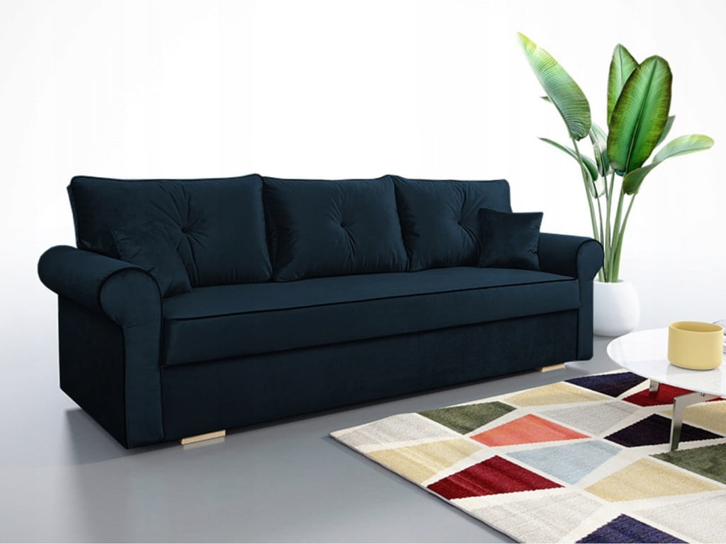 Kanapa rozkładana, sofa ROSI z funkcją spania, wybór tkanin/ granat PREMIUM