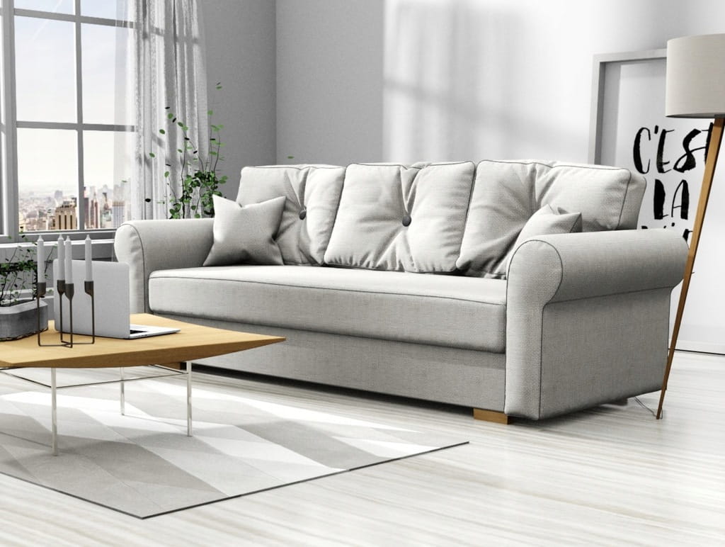 Kanapa rozkładana, sofa ROSI z funkcją spania, wybór tkanin/ jasny szary