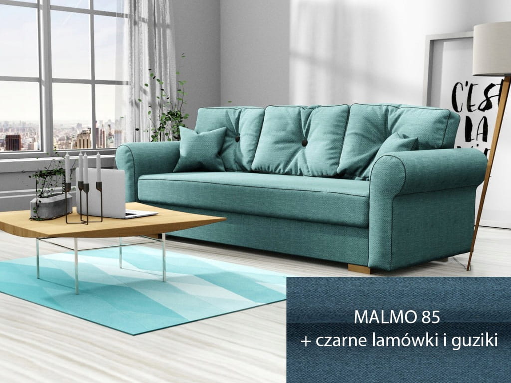 - Pojemnik na pościel: Umożliwia on łatwe przechowywanie pościeli, co oszczędza miejsce, utrzymuje porządek i podnosi komfort codziennego użytkowania kanapy.