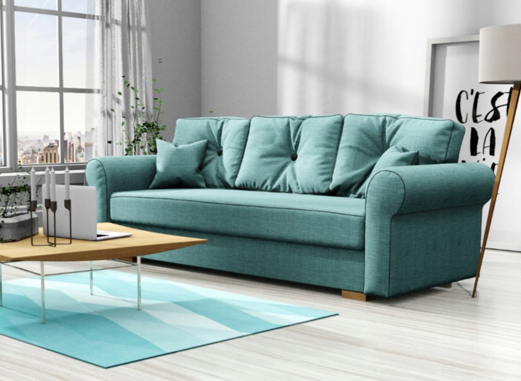 Kanapa rozkładana, sofa ROSI z funkcją spania, wybór tkanin/ turkus, morski