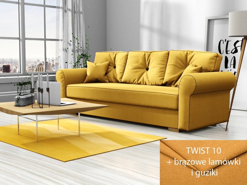 - Tył mebla tapicerowany, co zapewnia estetyczny wygląd kanapy w każdym miejscu