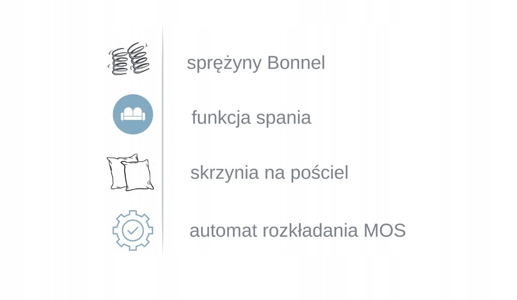 - Pojemnik na pościel: Umożliwia on łatwe przechowywanie pościeli, co oszczędza miejsce, utrzymuje porządek i podnosi komfort codziennego użytkowania kanapy.