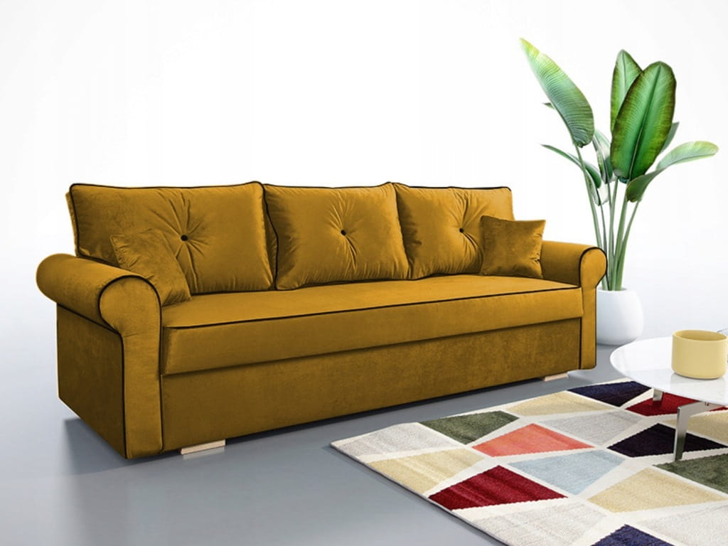 Kanapa rozkładana, sofa ROSI z funkcją spania, wybór tkaniny / musztardowy