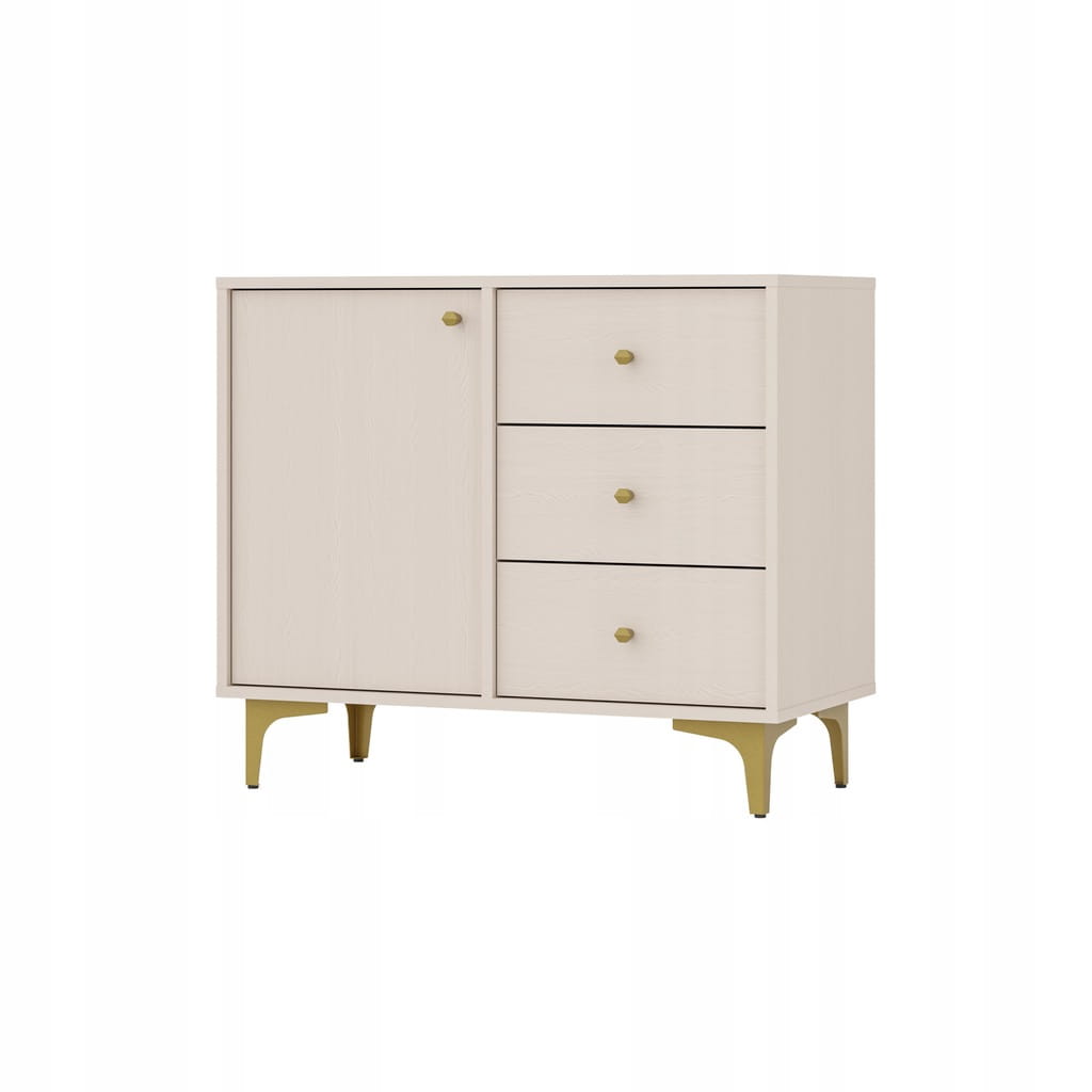 Komoda 1D 3 Szuflady SYDNEY1 - 84 x 73 x 41 PIASKOWY BEŻ + Złote akcenty