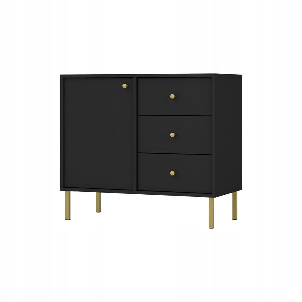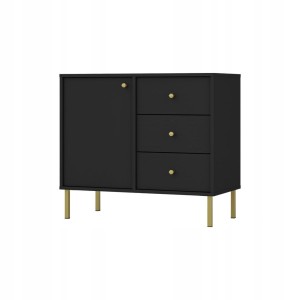 Komoda 1D 3 Szuflady SYDNEY2 - 84 x 74 x 41 CZARNY GRAFIT + Złote akcenty