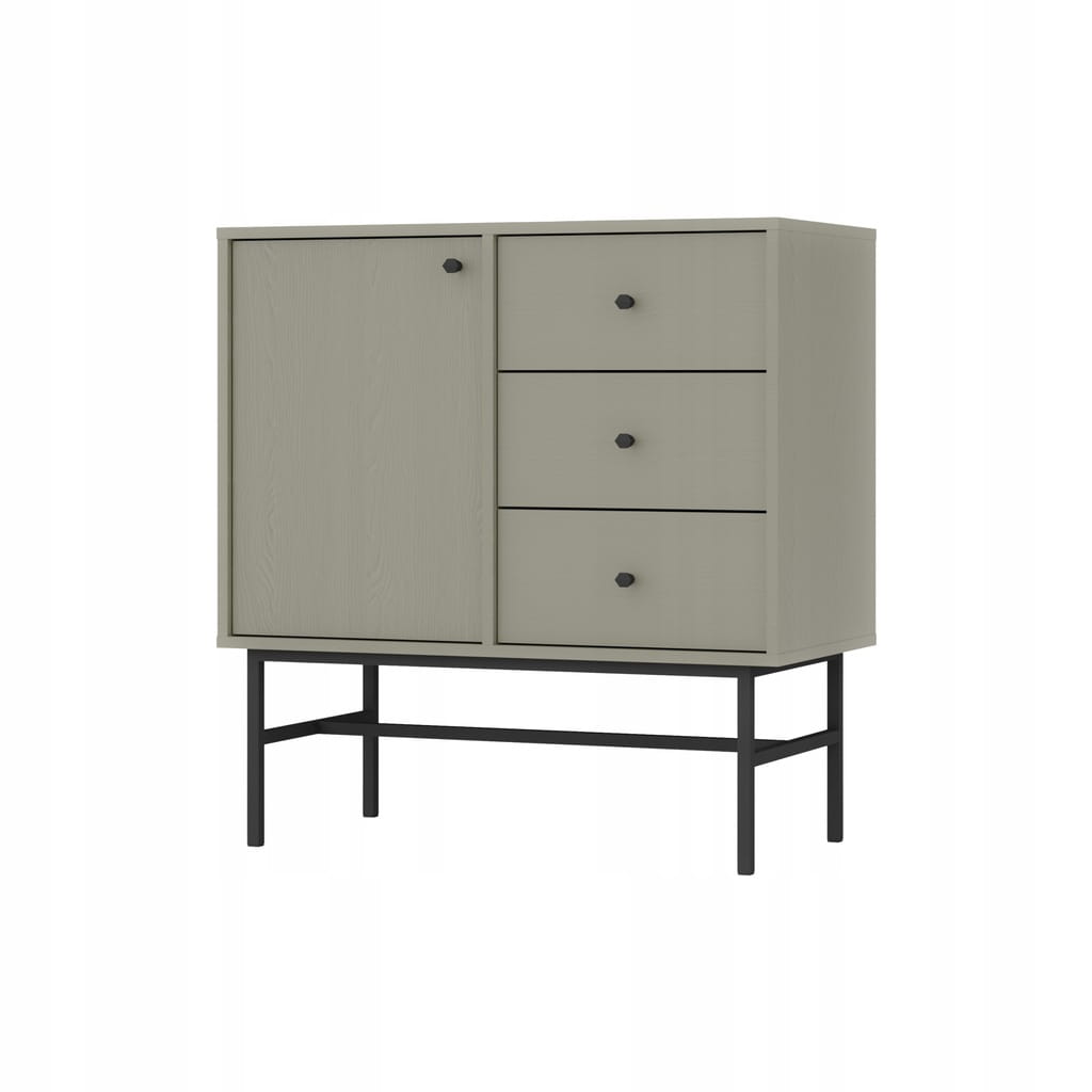 Klikając ,, kup teraz '' zamawiasz komodę jednodrzwiowa z trzema szufladami SYDNEY 3 na czarnym stelażu w odcieniu Eucaliptus ! W celu zamówienia innego rodzaju komody zapraszamy na pozostałe nasze aukcje.