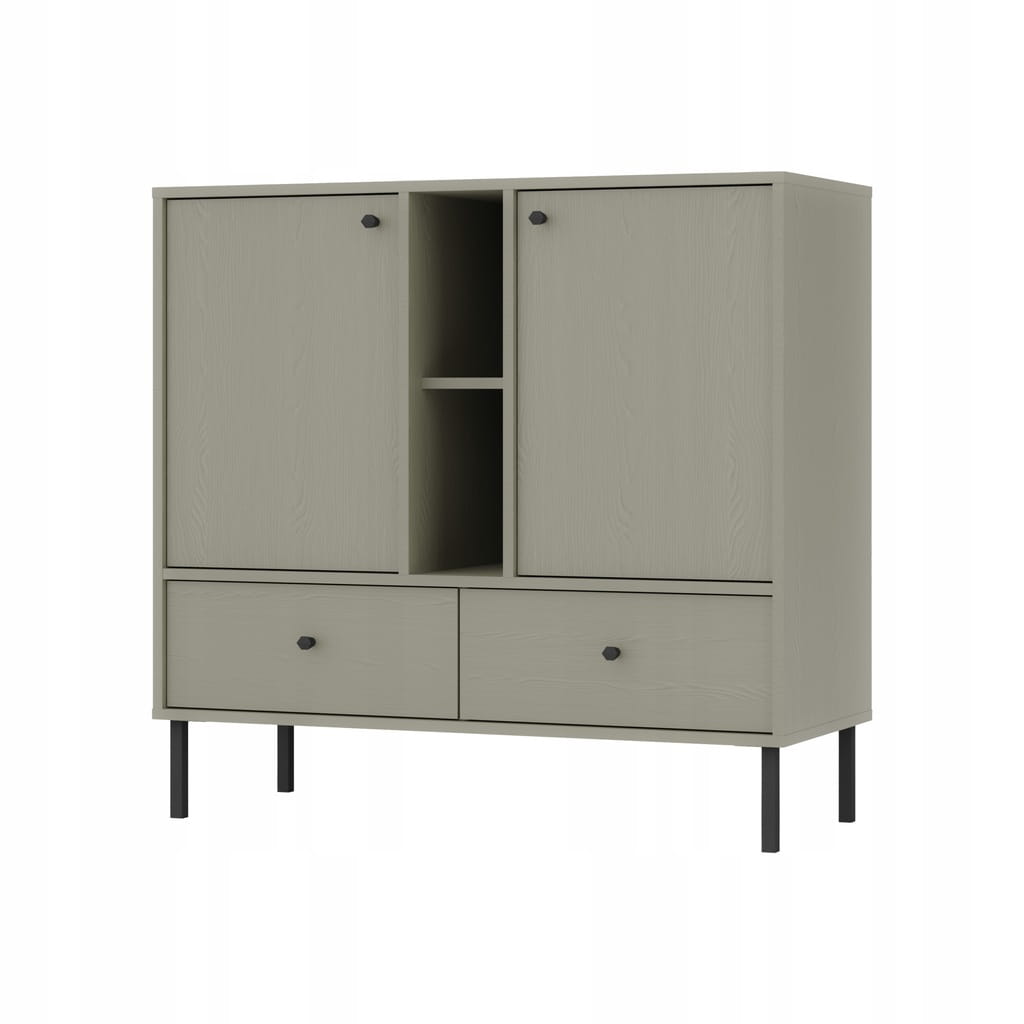 Klikając ,, kup teraz '' zamawiasz komodę dwudrzwiową z dwiema szufladami i półkami SYDNEY 2 na czarnej nodze prostej w odcieniu Eucaliptus ! W celu zamówienia innego rodzaju komody zapraszamy na pozostałe nasze aukcje.