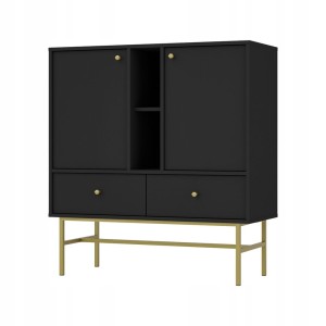 Komoda 2D 2 Szuflady SYDNEY3 - 100 x 108 x 41 CZARNY GRAFIT, Złote akcenty