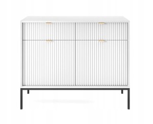 Komoda 2D 2S ZANZI 104 x 83 x 39 cm do salonu, lamele BIAŁY / CZARNY STELAŻ