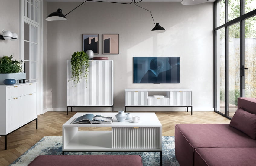Jeśli chcesz dodać swojemu mieszkaniu nowoczesnego i eleganckiego charakteru, wybór mebli z lamelami ,,ZANZI" to strzał w dziesiątkę! Ich unikalny design sprawia, że każde wnętrze zyskuje wyjątkowy styl. ✨