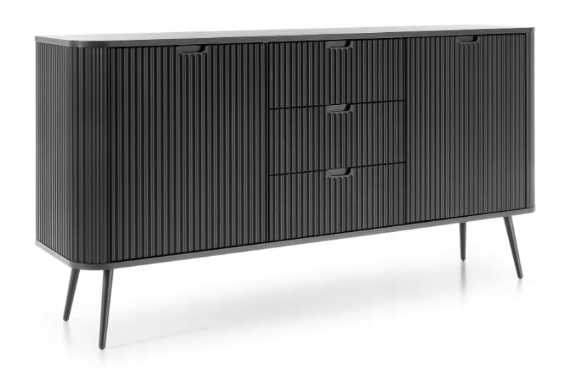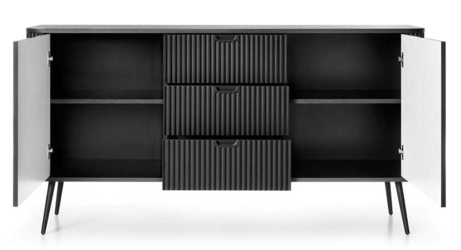 Komoda 2D 3S FROZEN 170 x 90 x 39 cm frezowany front CZARNY / CZARNE NOGI