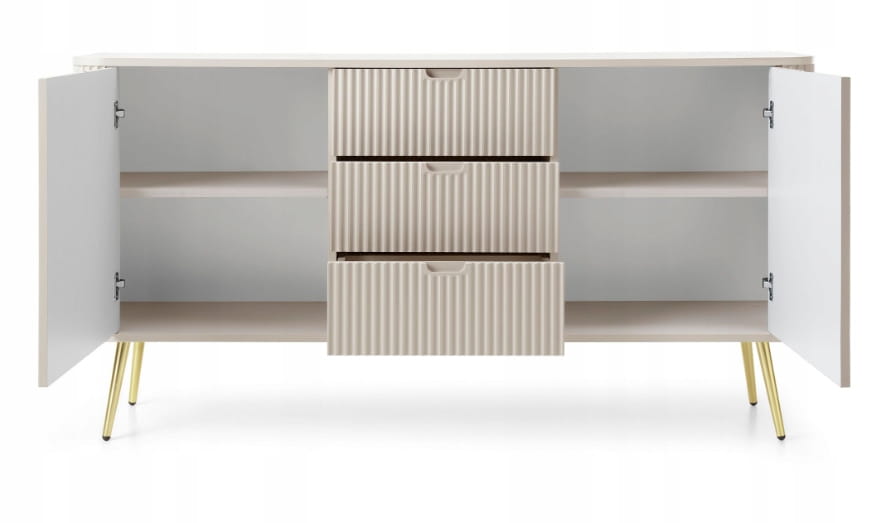 Komoda 2D 3S FROZEN 170 x 90 x 39 cm frezowany front KASZMIR / ZŁOTE NOGI