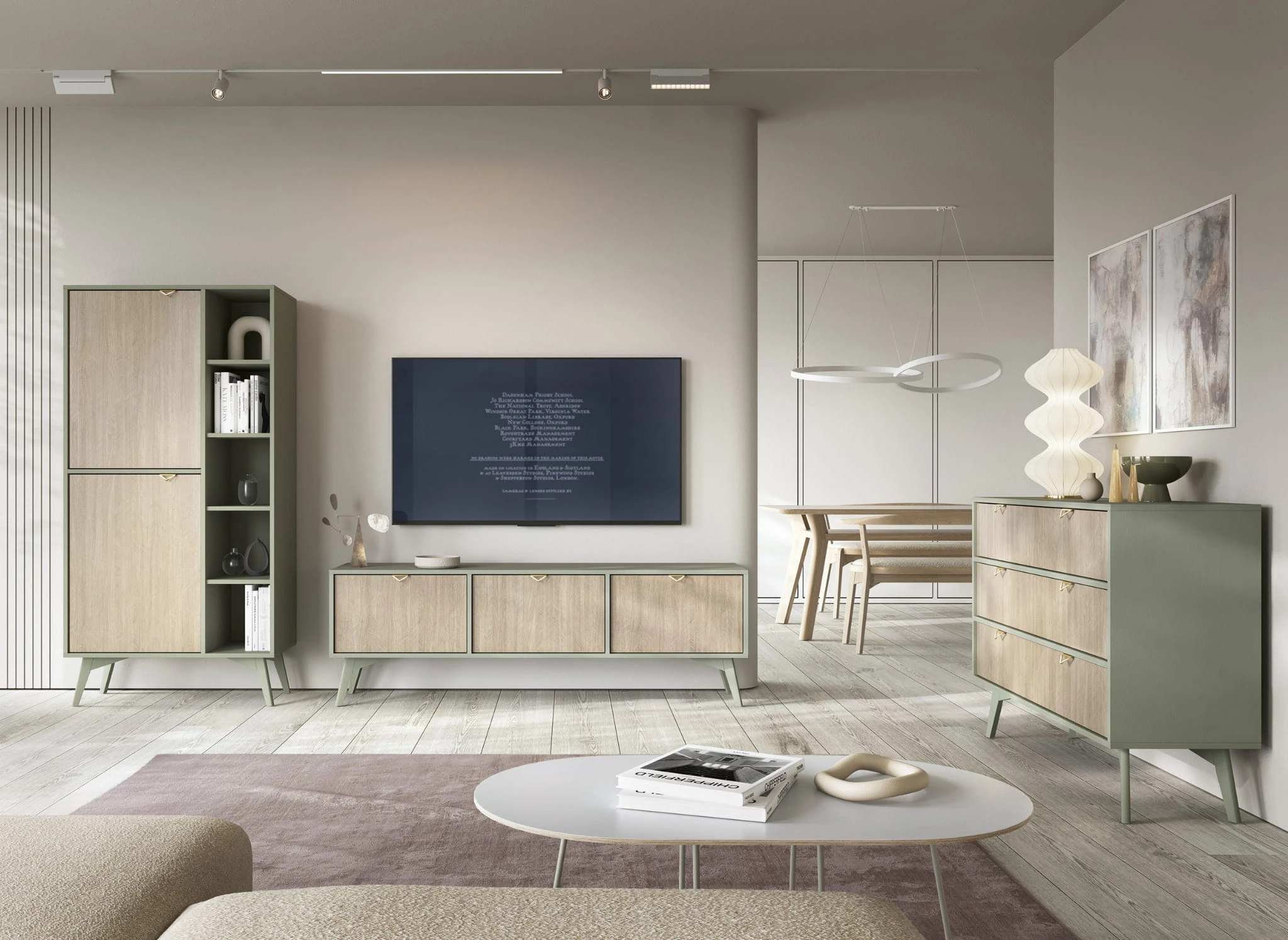 Meble OFELIA doskonale wpisują się w nowoczesne aranżacje salonu, styl skandynawski oraz japandi. W skład kolekcji wchodzą: funkcjonalne szafki RTV, pojemne komody, praktyczne witryny, a także regały i szafki do przechowywania, które pozwalają stworzyć spójną i estetyczną przestrzeń dzienną. Smukłe nóżki dodają lekkości bryłom, a przemyślane proporcje sprawiają, że meble do salonu OFELIA świetnie prezentują się zarówno w większych, jak i mniejszych wnętrzach.