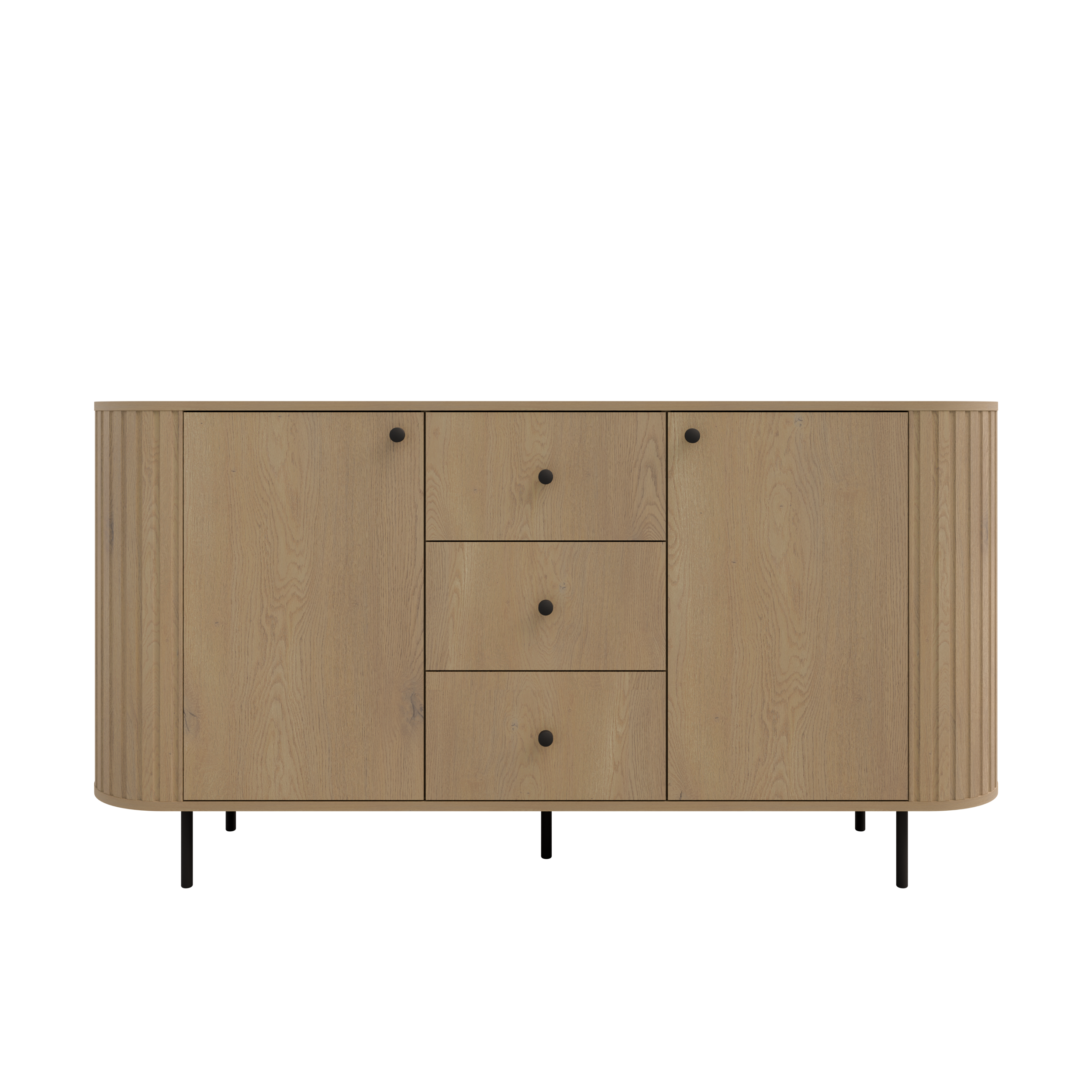Komoda 2F 3S Ovella 165 cm z szufladami Dąb Cremona na czarnych nóżkach