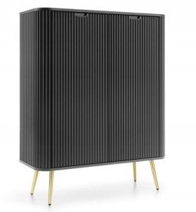 Komoda 2D Wysoka FROZEN 100 x 130 x 39cm frezowany front CZARNY/ ZŁOTE NOGI
