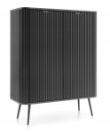 Komoda 2D Wysoka FROZEN 100 x 130 x 39cm frezowany front CZERŃ/ CZARNE NOGI