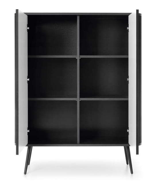 Komoda FROZEN to nie tylko praktyczny mebel, ale także stylowy element dekoracyjny, który doda Twojemu wnętrzu nowoczesnego charakteru. Smukłe, eleganckie czarne nogi nadają komodzie szyku a zarazem ułatwiają utrzymanie porządku. Komoda posiada dwie szafki z pojemymi półkami.