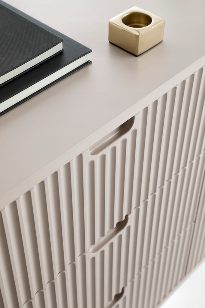 ✅ Eleganckie, ryflowane fronty – pionowe frezowania nadają meblowi unikalny, dekoracyjny charakter.