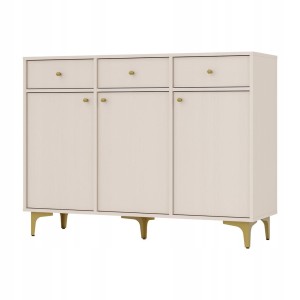 Klikając ,, kup teraz '' zamawiasz komodę trzydrzwiową z trzema szufladami SYDNEY 1 na złotej nodze typu rozgwiazda w odcieniu Piaskowy Beż ! W celu zamówienia innego rodzaju komody zapraszamy na pozostałe nasze aukcje.
