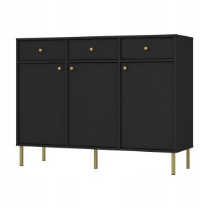 Komoda 3D 3 Szuflady SYDNEY2 - 125 x 95 x 41 CZARNY GRAFIT, Złote akcenty