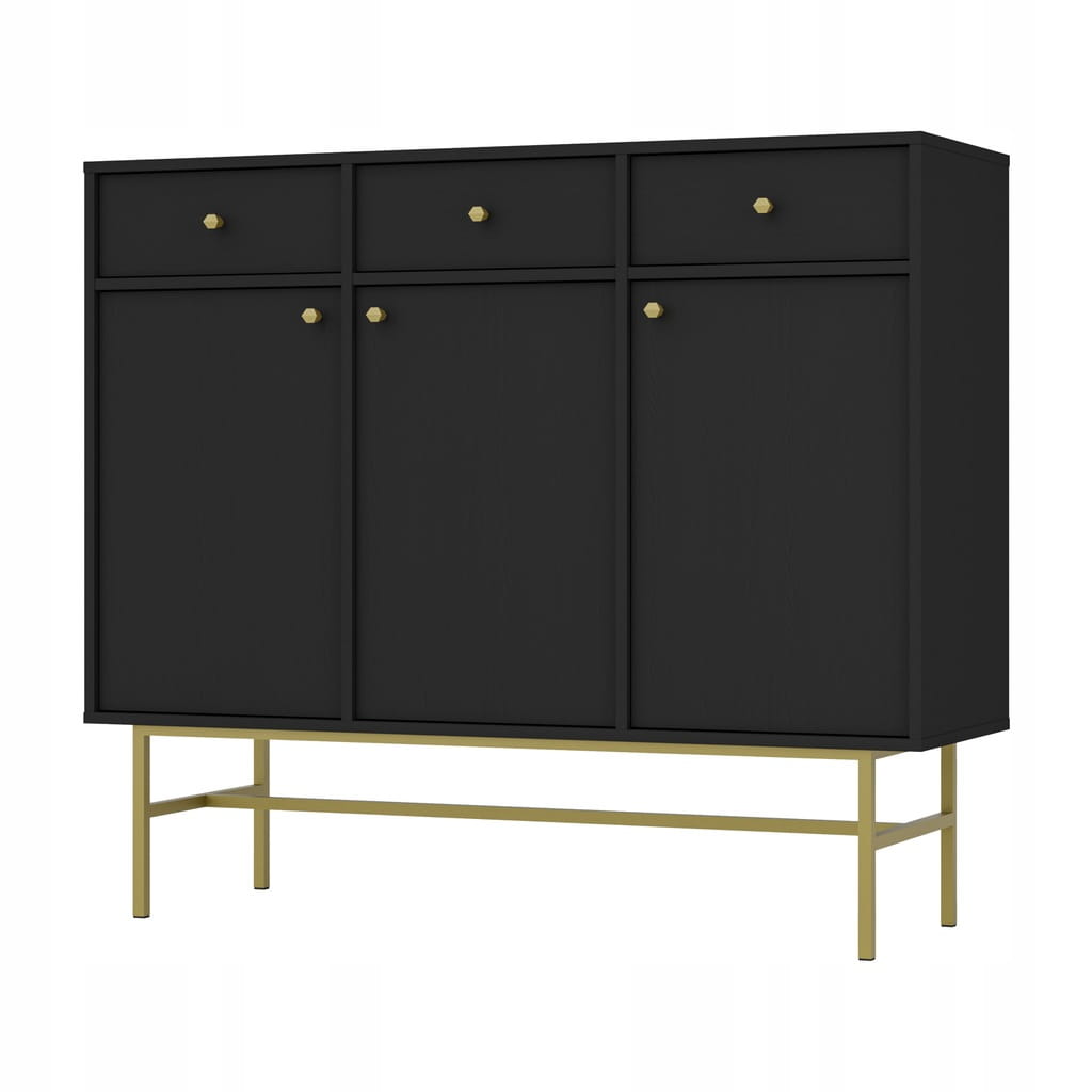 Klikając ,, kup teraz '' zamawiasz komodę trzydrzwiową z trzema szufladami SYDNEY 3 na złotym stelażu w odcieniu Czarny grafit ! W celu zamówienia innego rodzaju komody zapraszamy na pozostałe nasze aukcje.