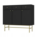 Komoda 3D 3 Szuflady SYDNEY3 - 125 x 108 x 41 CZARNY GRAFIT, Złote akcenty