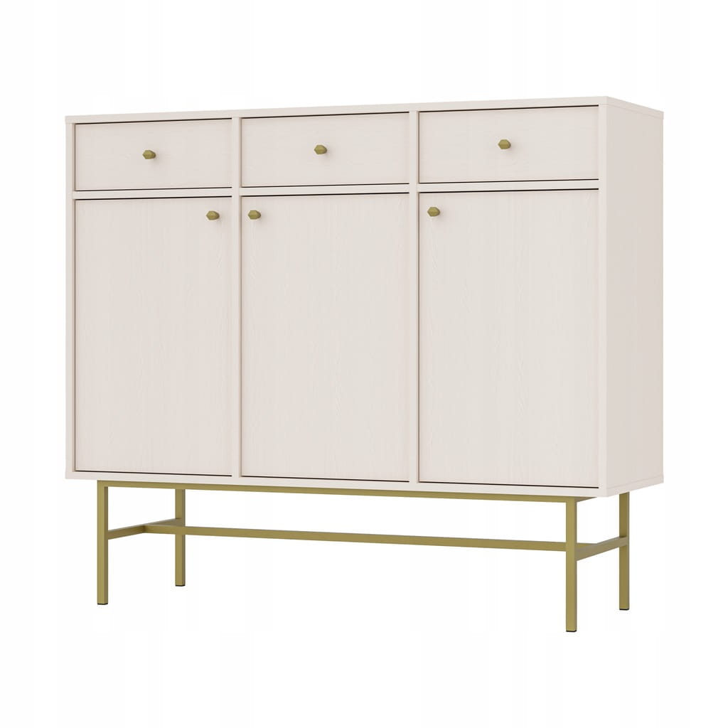 Klikając ,, kup teraz '' zamawiasz komodę trzydrzwiową z trzema szufladami SYDNEY 3 na złotym stelażu w odcieniu Piaskowy Beż ! W celu zamówienia innego rodzaju komody zapraszamy na pozostałe nasze aukcje.