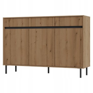 Komoda 3D 3S ANKARA 150 x 40 x 100 cm, ryflowane fronty lamele, DĄB EVOKE